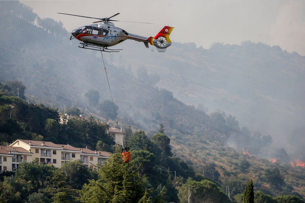 Images released by firefighters in the region showed planes dumping water onto blazing agricultural buildings, while the Spanish Red Cross tweeted pictures of first responders bringing elderly residents to safety.