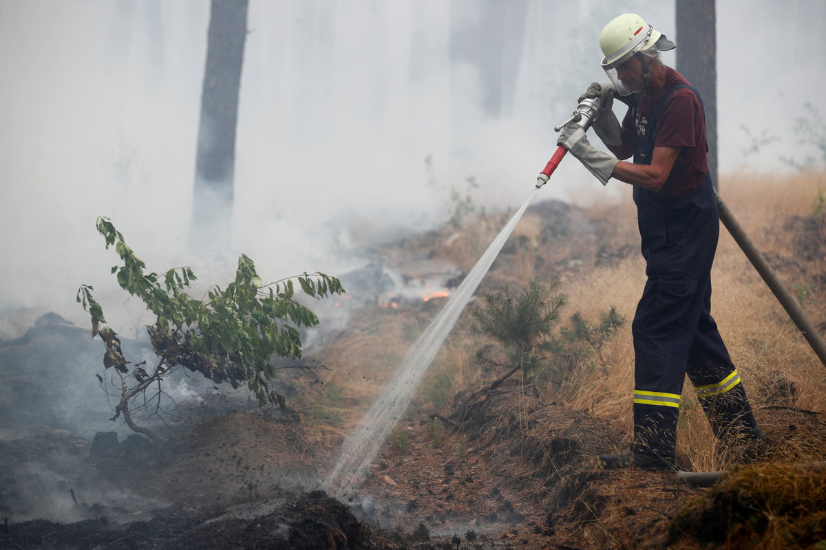 A helicopter drops water to put out a forest fire near Treuenbrietzen, Germany August 24, 2018. REUTERS/Hannibal HanschkeFirefighters help to put out a forest fire near Treuenbrietzen, Germany August 24, 2018. REUTERS/Hannibal HanschkeA Firefighter helps to put out a forest fire near Treuenbrietzen, Germany August 24, 2018. REUTERS/Hannibal HanschkeFirefighters help to put out a forest fire near Treuenbrietzen, Germany August 24, 2018. REUTERS/Hannibal HanschkeA helicopters carries water to put out a forest fire near Treuenbrietzen, Germany August 24, 2018. REUTERS/Hannibal HanschkeFirefighters rest after helping to put out a forest fire near Treuenbrietzen, Germany August 24, 2018. REUTERS/Hannibal HanschkeFirefighters help to put out a forest fire near Treuenbrietzen, Germany August 24, 2018. REUTERS/Hannibal HanschkeFirefighters help to put out a forest fire near Treuenbrietzen, Germany August 24, 2018. REUTERS/Hannibal HanschkeA Firefighter helps to put out a forest fire near Treuenbrietzen, Germany August 24, 2018. REUTERS/Hannibal HanschkeFirefighters help to put out a forest fire near Treuenbrietzen, Germany August 24, 2018. REUTERS/Hannibal HanschkeFirefighters help to put out a forest fire near Treuenbrietzen, Germany August 24, 2018. REUTERS/Hannibal HanschkeFirefighters help to put out a forest fire near Treuenbrietzen, Germany August 24, 2018. REUTERS/Hannibal HanschkeFirefighters help to put out a forest fire near Treuenbrietzen, Germany August 24, 2018. REUTERS/Hannibal Hanschke