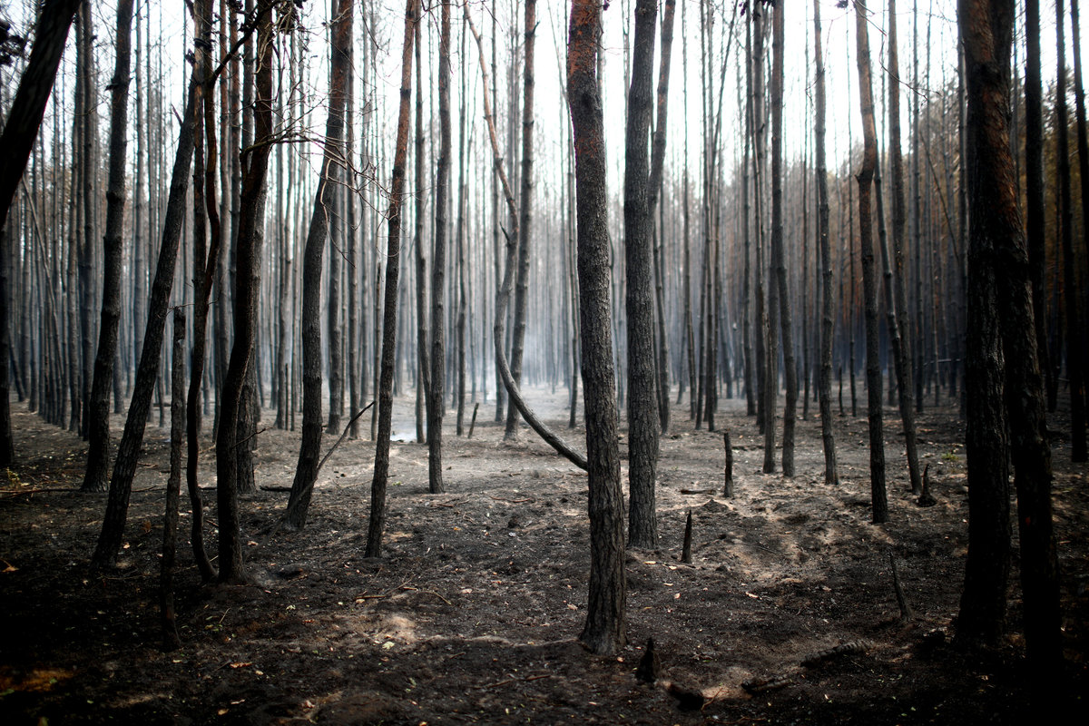 Trees are seen after a forest fire near Treuenbrietzen, Germany August 24, 2018. REUTERS/Hannibal Hanschke