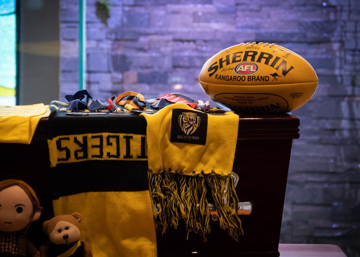 In Cairns on Friday afternoon, at Declan's funeral, hundreds gathered dressed in the yellow and black of his beloved Richmond Football Club.