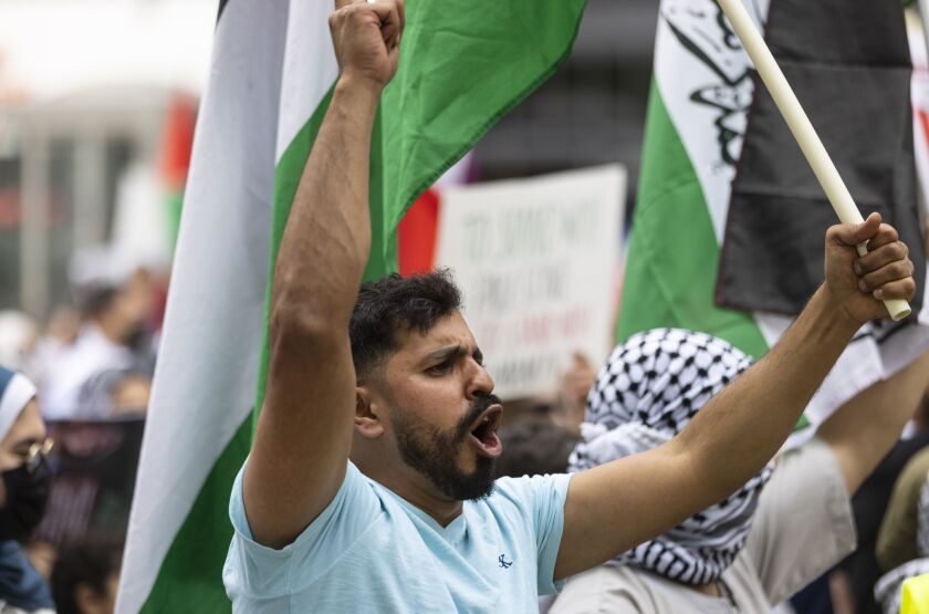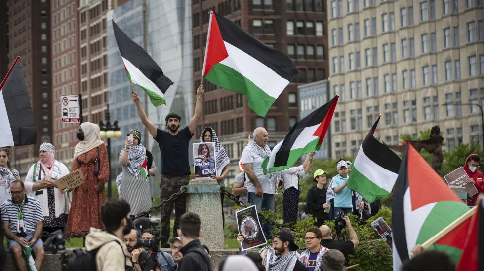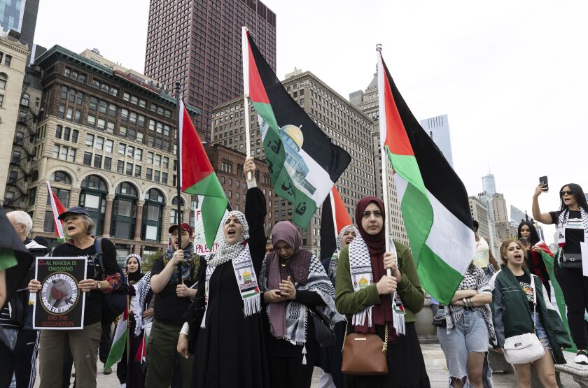 Hundreds of demonstrators took to the streets of downtown Chicago to protest the May 11 killing of Palestinian-American journalist Shireen Abu Akleh.