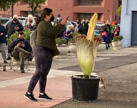 Solomon Leyva, a nursery owner in Alameda who deals in exceptionally rare plants, had been posting on social media about his amorphophallus titanum. When he saw a lot of interest in the giant blooming flower, he decided to wheel it Monday to the abandoned building, where a line of people stretched down the block for most of the day, the San Francisco Chronicle reported.
