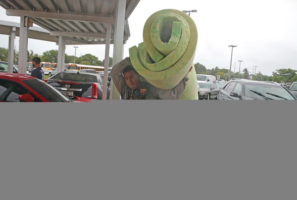 KEY WEST, Fla. �� Under a light rain, hundreds of Lower Keys residents trudged into a high school Saturday morning, hauling trash bags, rolling suitcases and lugging bottles of water.