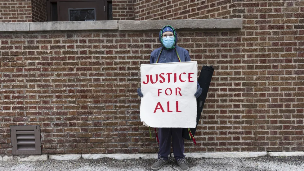 “All of us are being deprived of that principle of justice,” Abel Muhammad, a student minister with the Nation of Islam, told the crowd. “If we work in this country, we should have justice. If we have children and family in this country, we should have justice. And we shouldn’t have to beg for it.”