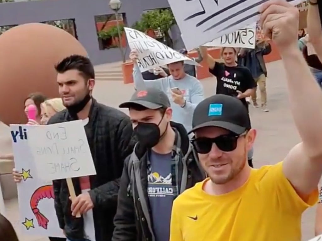 It started in Pershing Square, where podcast hosts “Chad and JT” rallied with protesters who marched with a banner that read “end small dong shame”.