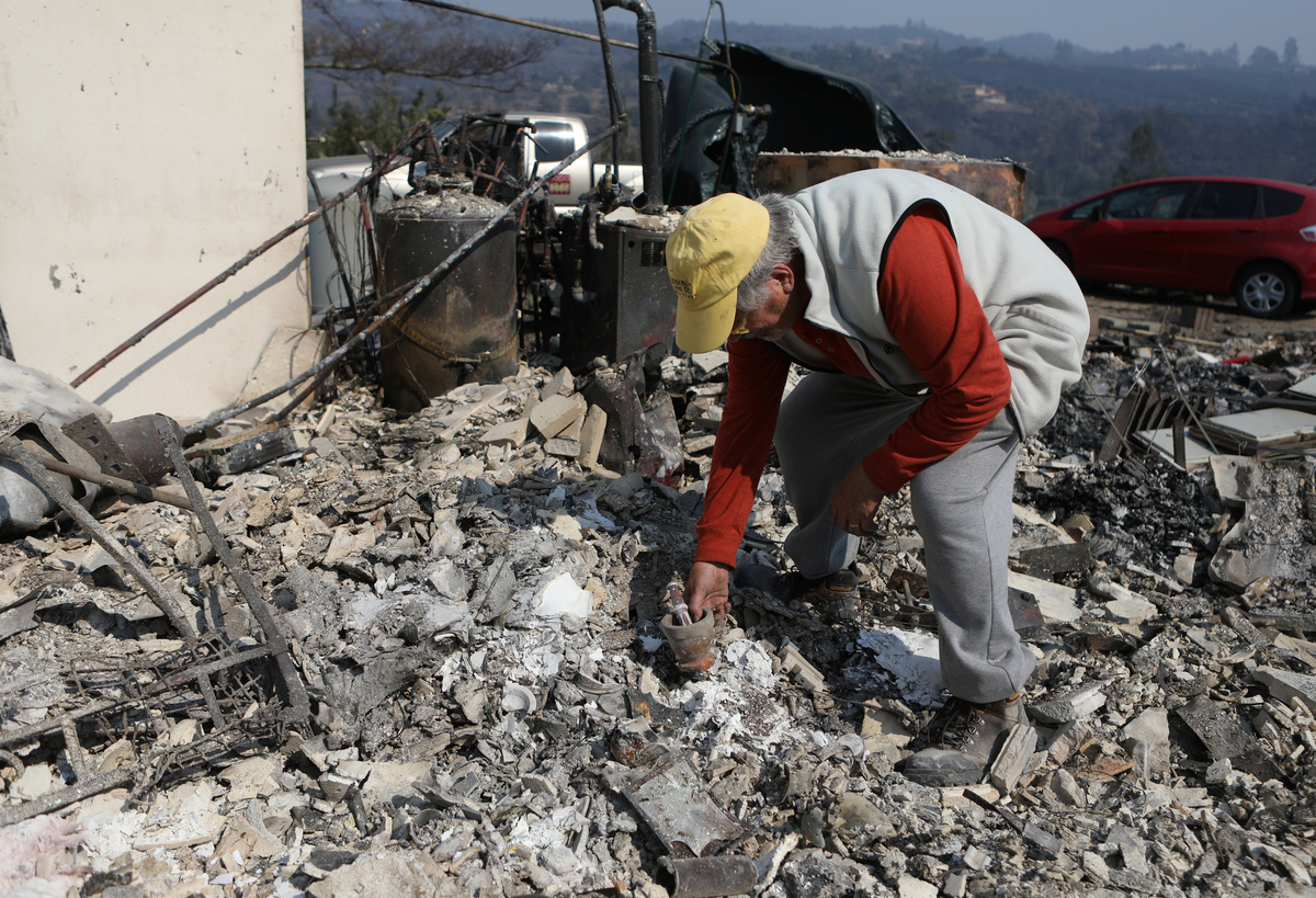 Much of the devastation centered in and around the Sonoma County town of Santa Rosa, where whole neighborhoods were reduced to landscapes of gray ash, smoldering debris and burned-out vehicles.