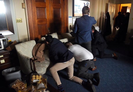 They describe hiding "behind chairs and under desks" and barricading themselves in offices, while others watched the events of 6 January on TV while they "frantically tried to reach bosses and colleagues as they fled for their lives".