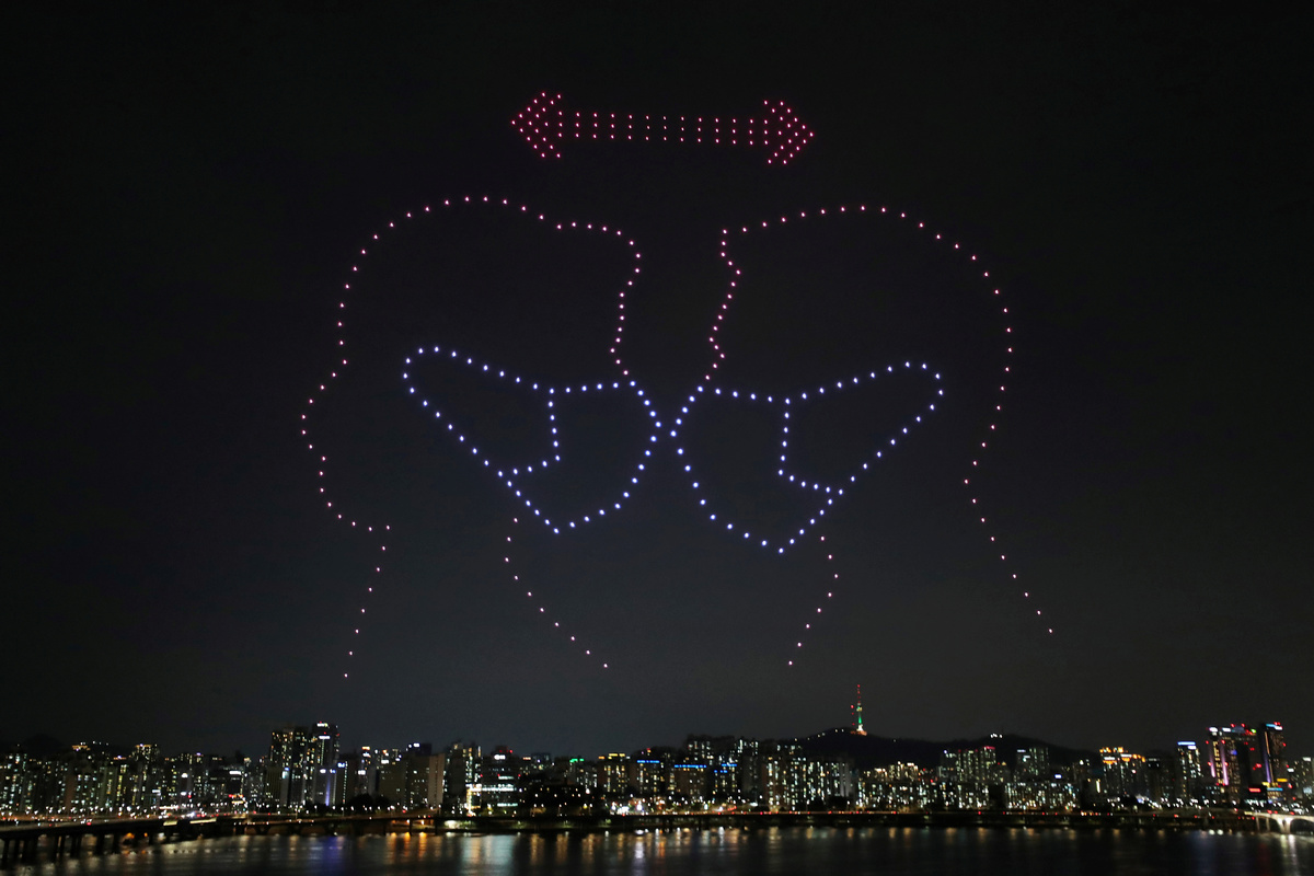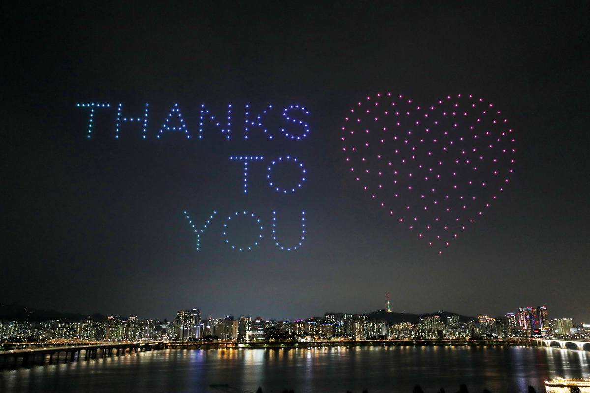 Hundreds of drones light up Seoul night sky with coronavirus advice