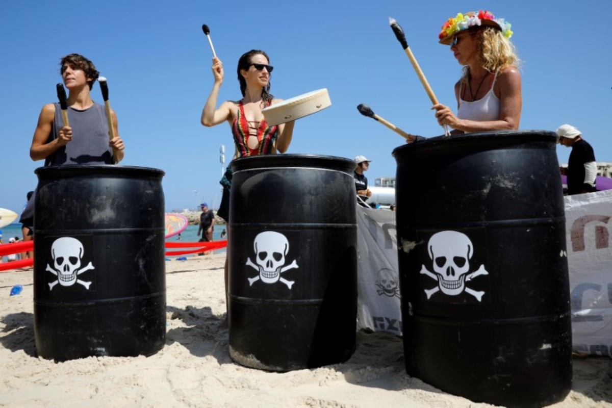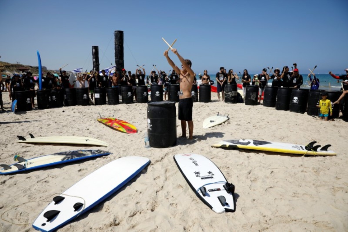 Hundreds of Israeli surfers take part in what they said was a record-breaking protest against potential environmental damage from an off-shore gas development project in the Mediterranean Sea at Herzliya, Israel June 22, 2018 REUTERS/Amir CohenHundreds of Israeli surfers take part in what they said was a record-breaking protest against potential environmental damage from an off-shore gas development project in the Mediterranean Sea at Herzliya, Israel June 22, 2018 REUTERS/Amir CohenHundreds of Israeli surfers take part in what they said was a record-breaking protest against potential environmental damage from an off-shore gas development project in the Mediterranean Sea at Herzliya, Israel June 22, 2018 REUTERS/Amir CohenIsraeli protestors, together with hundreds of Israeli surfers, take part in what they said was a record-breaking protest against potential environmental damage from an off-shore gas development project in the Mediterranean Sea at Herzliya, Israel June 22, 2018 REUTERS/Amir CohenHundreds of Israeli surfers take part in what they said was a record-breaking protest against potential environmental damage from an off-shore gas development project in the Mediterranean Sea at Herzliya, Israel June 22, 2018 REUTERS/Amir CohenAn installation on display as hundreds of Israeli surfers, take part in what they said was a record-breaking protest against potential environmental damage from an off-shore gas development project in the Mediterranean Sea at Herzliya, Israel June 22, 2018 REUTERS/Amir Cohen