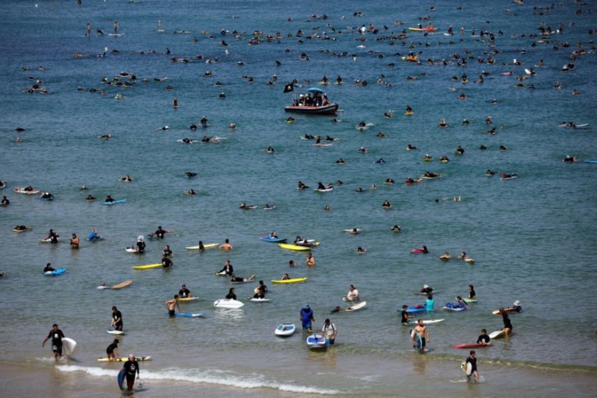 Hundreds of Israelis surf against gas rig in Guinness record bid