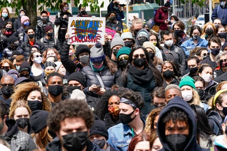 The march and rally was organized by Nattalyee Randall and Courtney Daniels. One of the speakers was Broadway actor Ashley De La Rosa, who said she has lost count of how many times she was the only Black person in the room. “There is a culture of white supremacy that is built into this industry and into our world that tells us that we can't,” she said. “This must change before we return to work.”