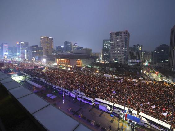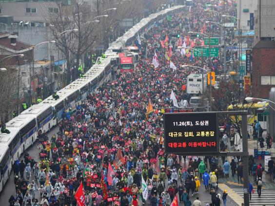 In what is believed to be one of the largest demonstrations so far over the allegations engulfing Ms Park, organisers said 1.3 million protesters filled the streets in the capital of Seoul on Saturday evening, with 1.5 million estimated to join by the end of the night.