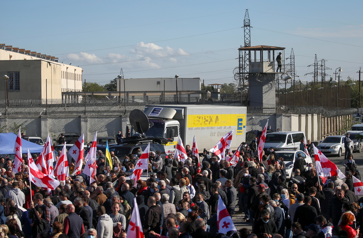 Some of his supporters from the United National Movement party that he founded gathered outside the prison holding him in the town of Rustavi, southeast of the capital, on Monday.