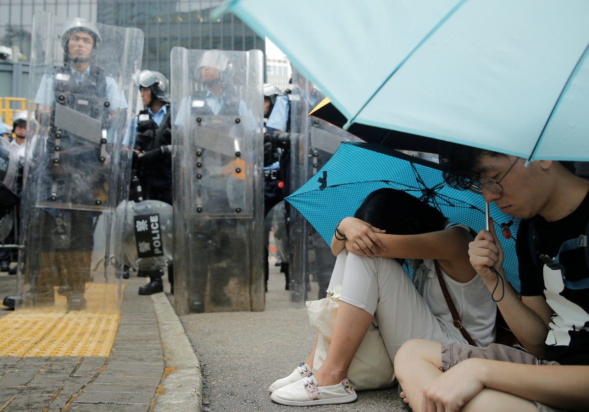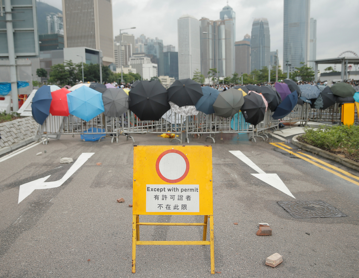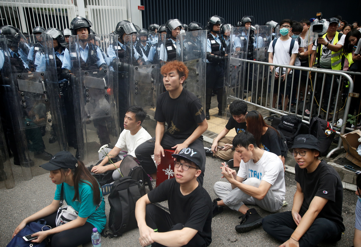 The protesters, most of them young people dressed in black, had erected barricades as they prepared to hunker down for an extended occupation of the area, in scenes reminiscent of pro-democracy "Occupy" protests that gridlocked the former British colony in 2014.