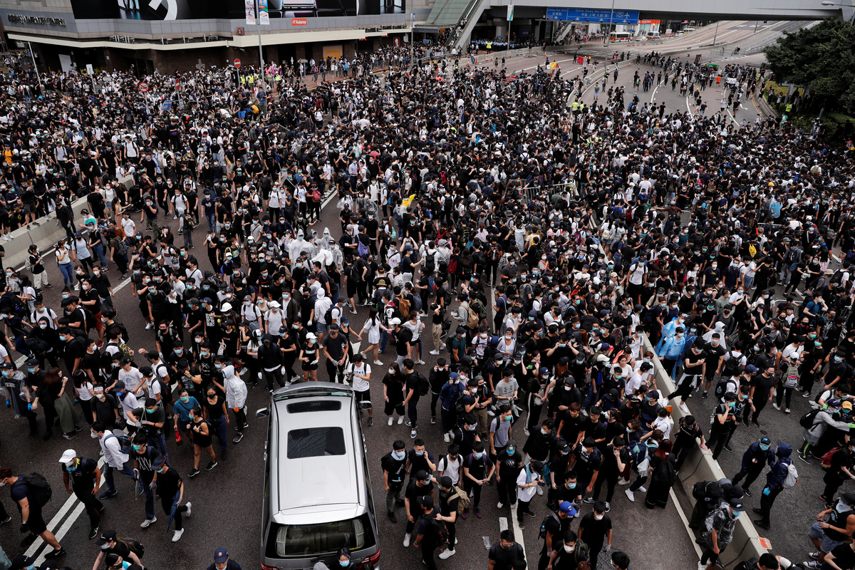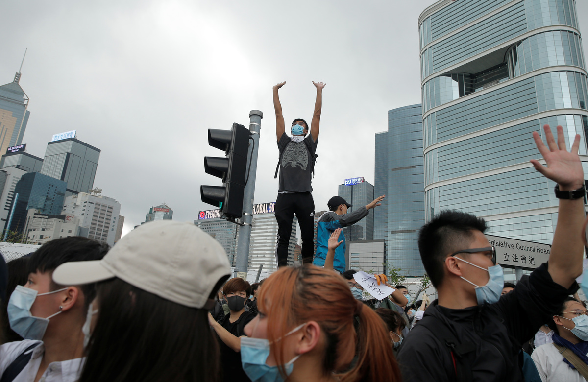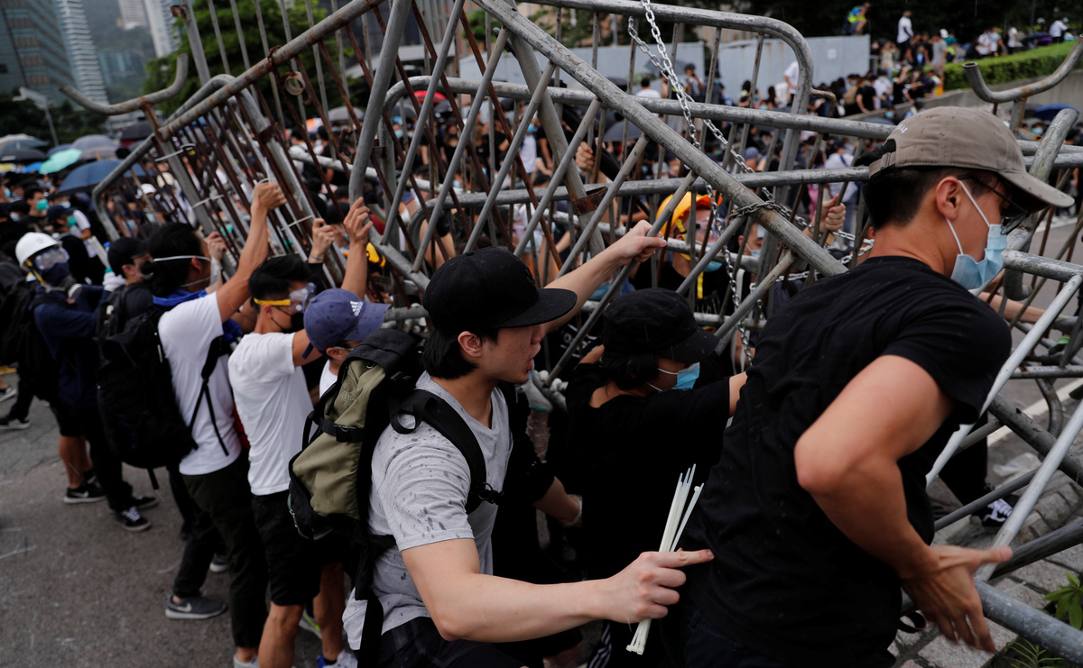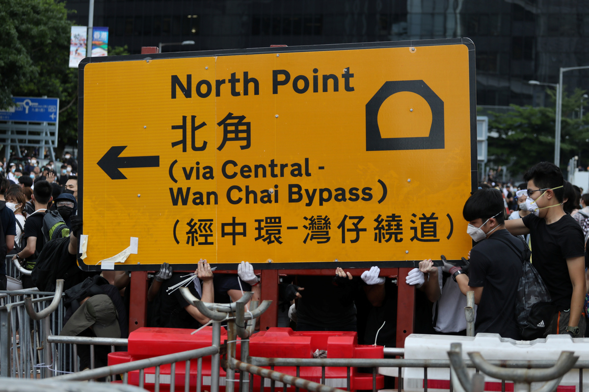 The protesters, most of them young people dressed in black, had erected barricades as they prepared to hunker down for an extended occupation of the area, in scenes reminiscent of pro-democracy "Occupy" protests that gridlocked the former British colony in 2014.