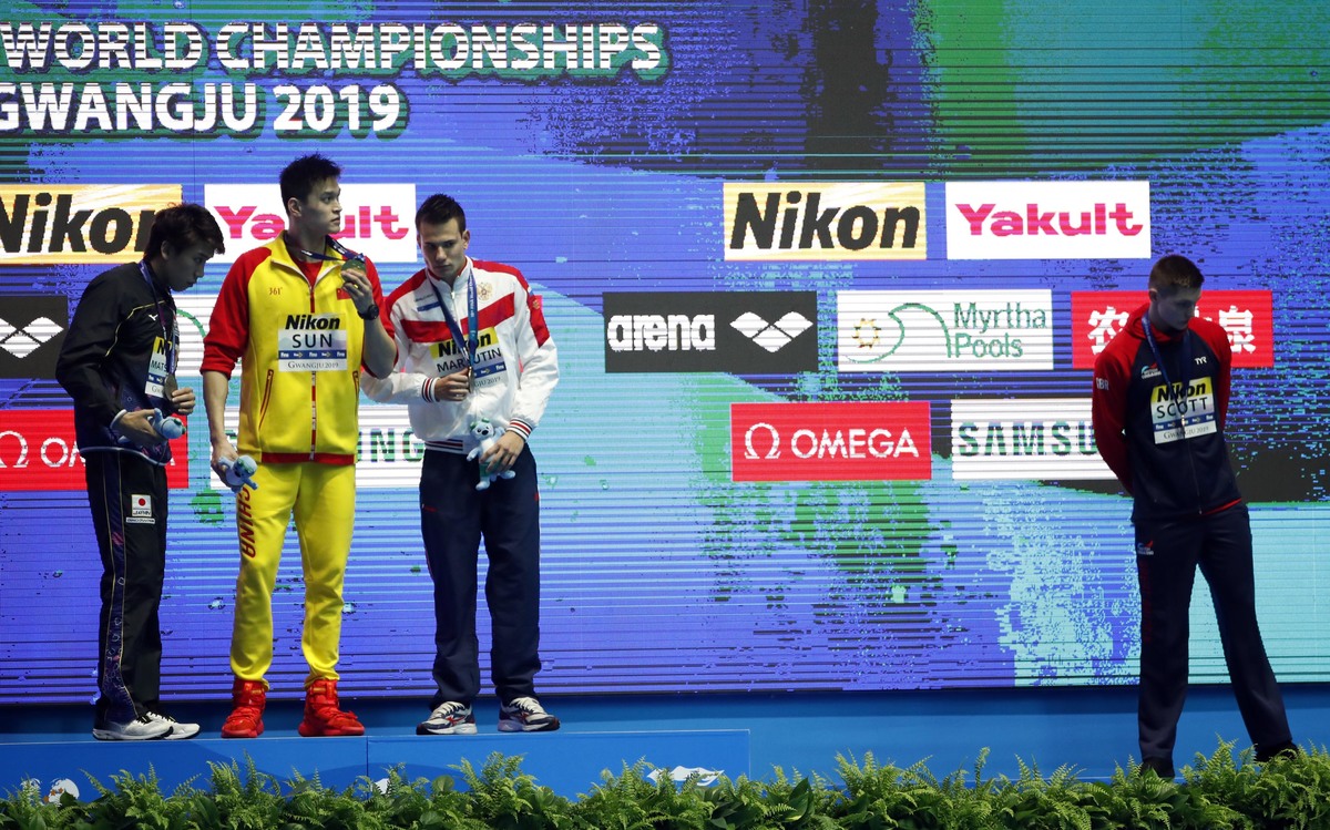 Horton refused to share the podium after picking up silver behind Sun in the 400 while 200 bronze medallist Scott refused to shake his hand at the medals ceremony, a move that triggered a furious response from the Chinese swimmer.