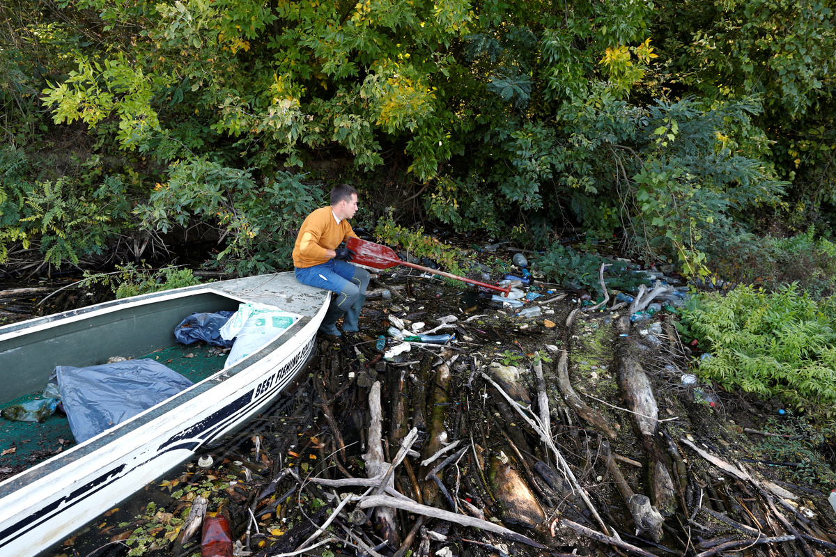 TISZAFURED, Hungary (Reuters) - Bence Pardy spent his summers as a child by Hungary's second main river, the Tisza. Now, at 32, he has given up his job to move back there permanently to collect plastic waste which pollutes its waters.