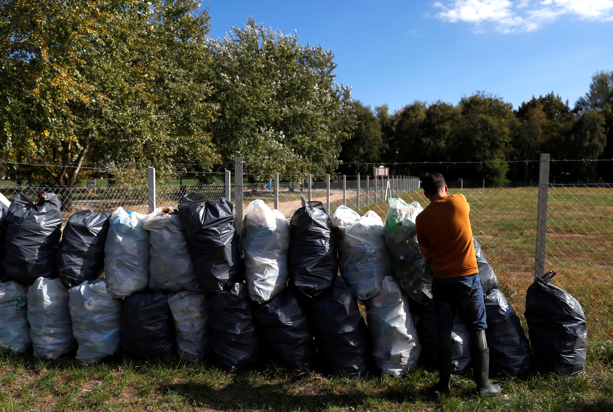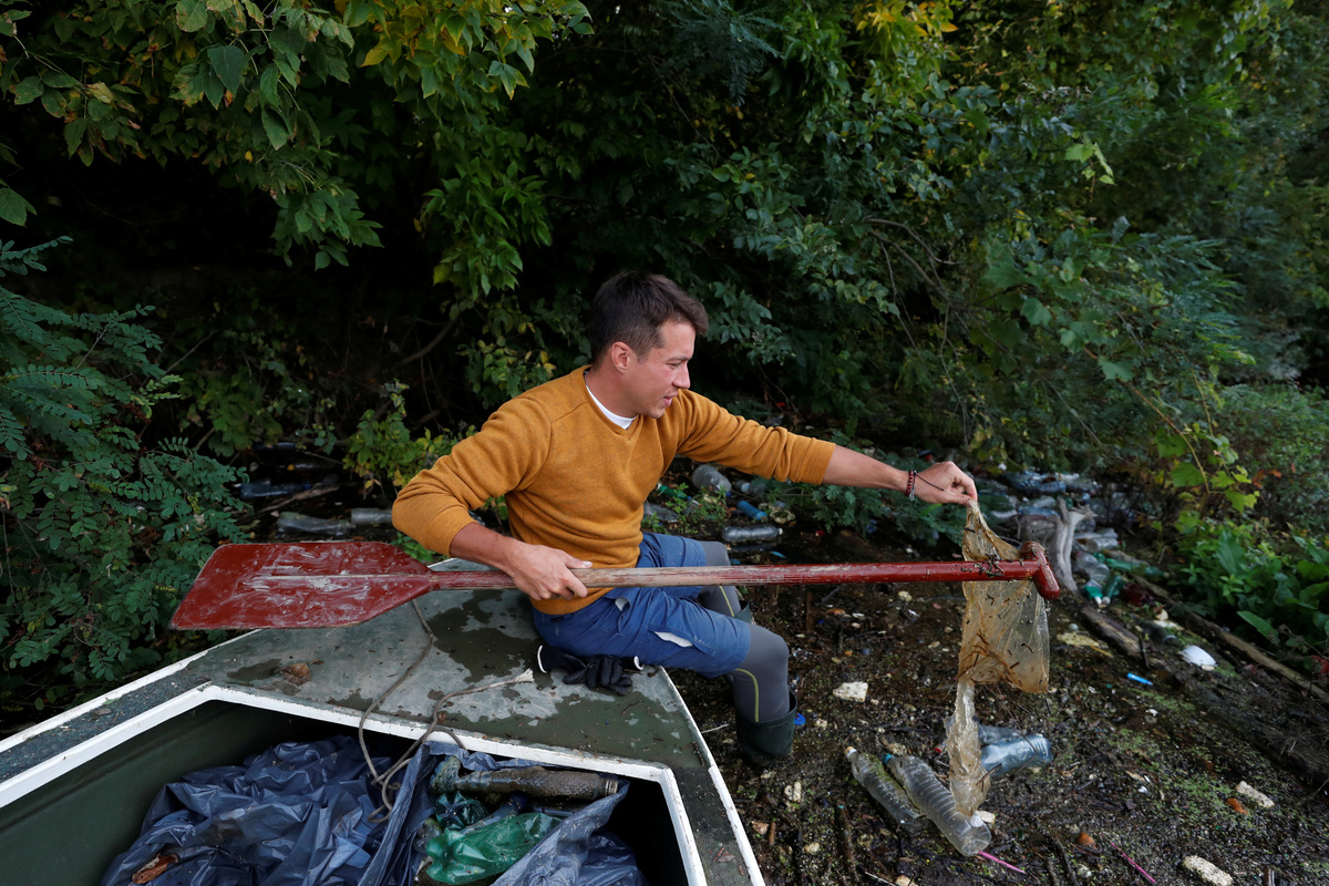 "We used to have a house in a nearby small village and came here for the summers. There was no waste at that time... there wasn't this craze for plastic plates and forks," Pardy said, picking empty bottles and plastic bags from the grass and trees hanging over the slow-moving river.