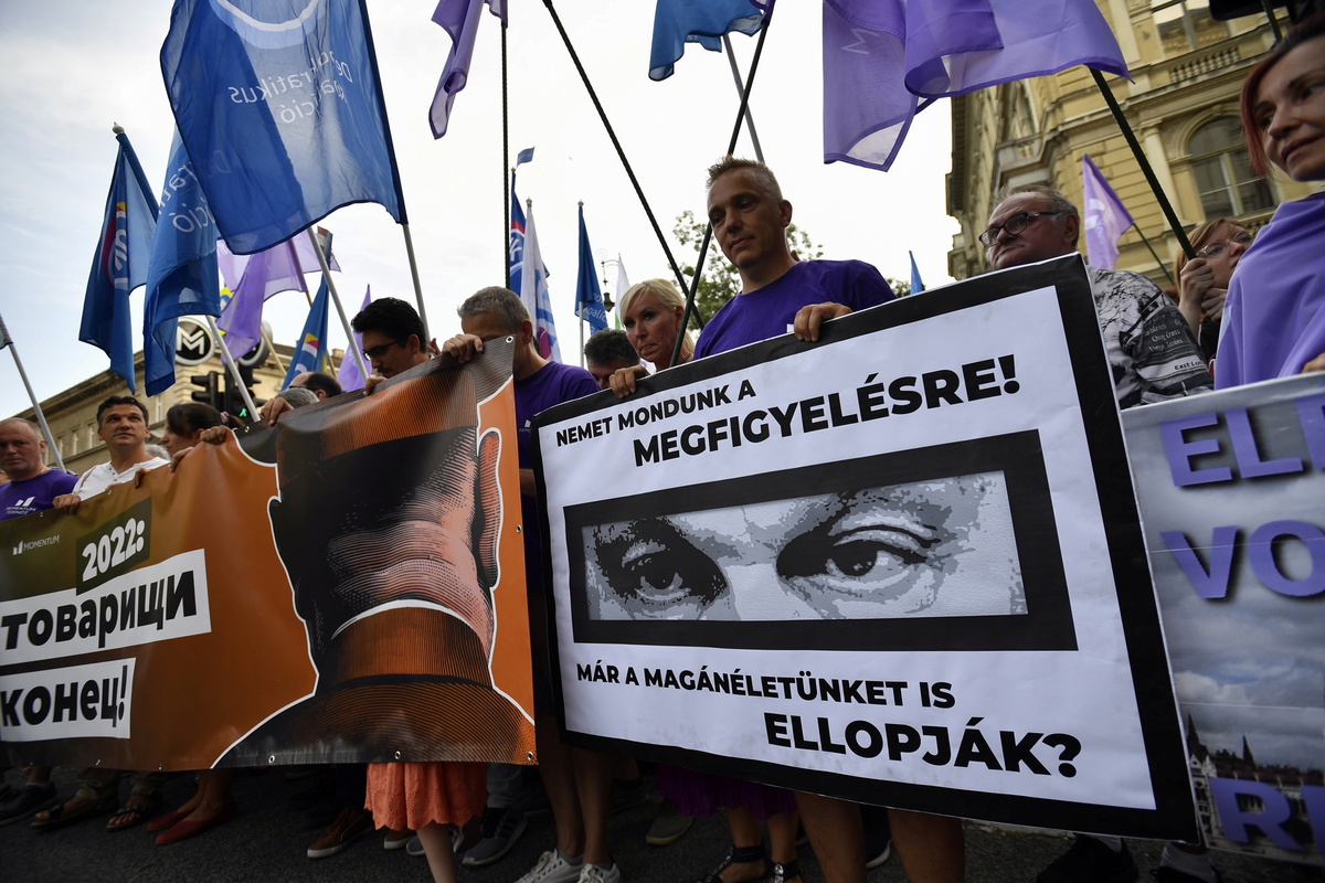 About 1,000 Hungarians protested on Monday over allegations that the government used Israeli-made Pegasus spyware for illegal surveillance of public figures in Hungary, drawing comparisons with the country's communist past.