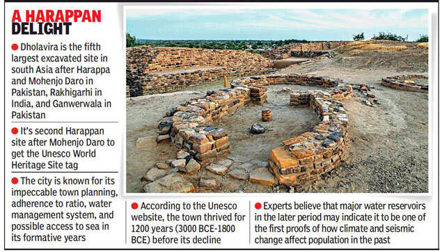 AHMEDABAD: Dholavira, a Harappan-era metropolis in the Kutch region of Gujarat, earned the coveted Unesco World Heritage Site (WHS) tag on Tuesday, ending an eight-year wait. Dholavira becomes the fourth WHS in Gujarat after Champaner, Rani ki Vav in Patan, and the historic city of Ahmedabad.