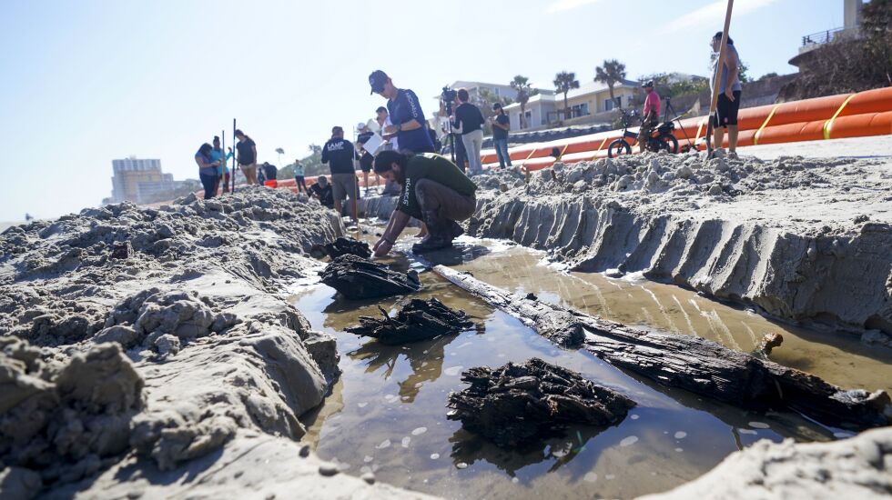 DAYTONA BEACH SHORES, Fla. — Severe beach erosion from two late-season hurricanes has helped unearth what appears to be a wooden ship dating from the 1800s.