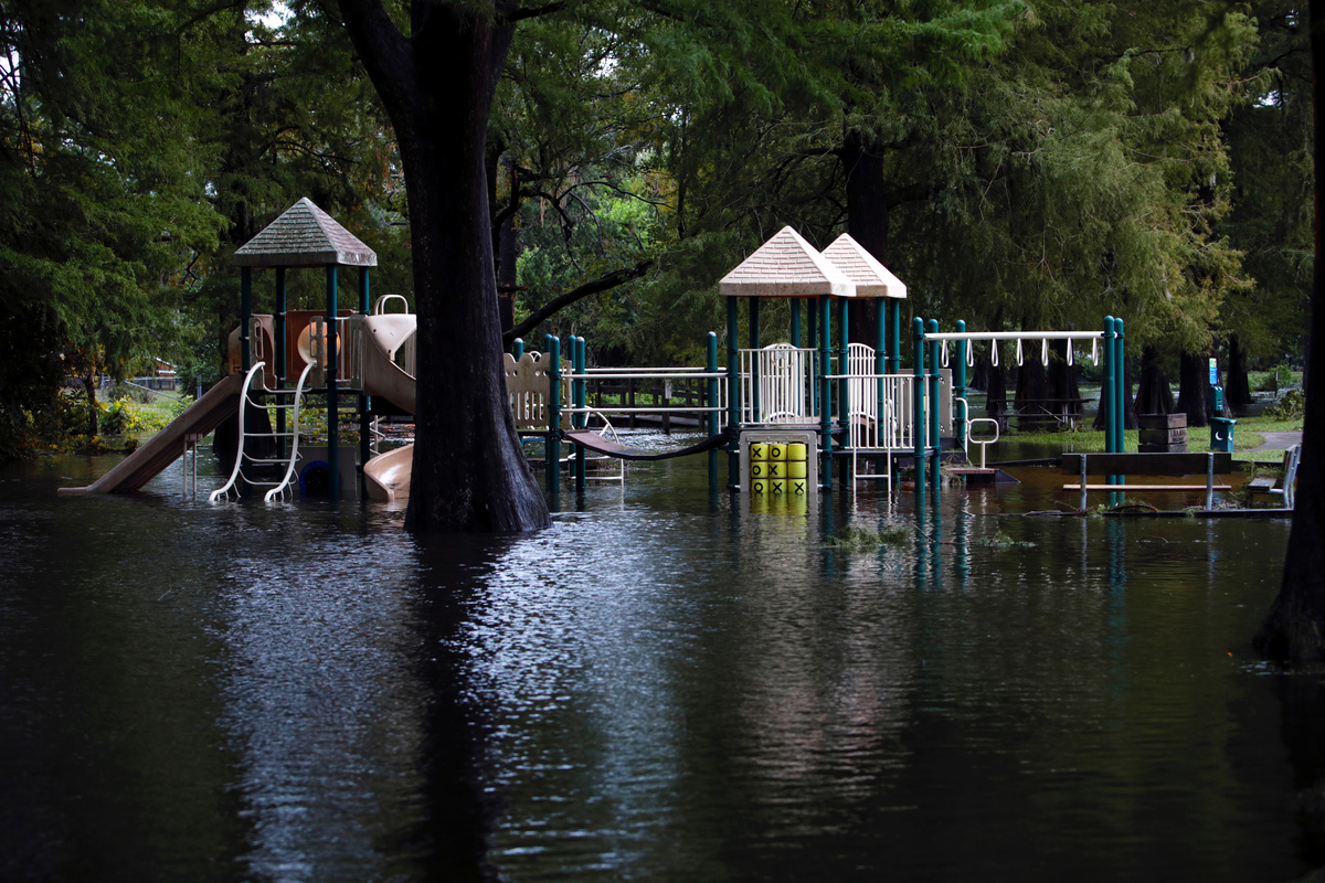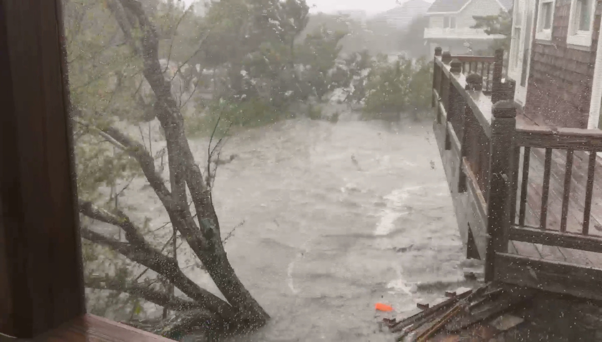 Floodwaters came halfway up to kitchen countertops and battered fences and boardwalks, according to images on social media. One island resident uploaded a video on social media showing people driving a speedboat down a flooded street.