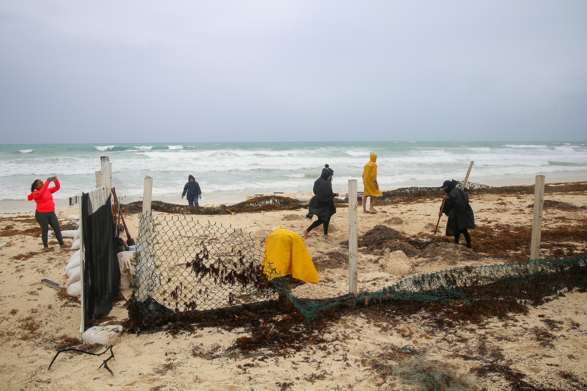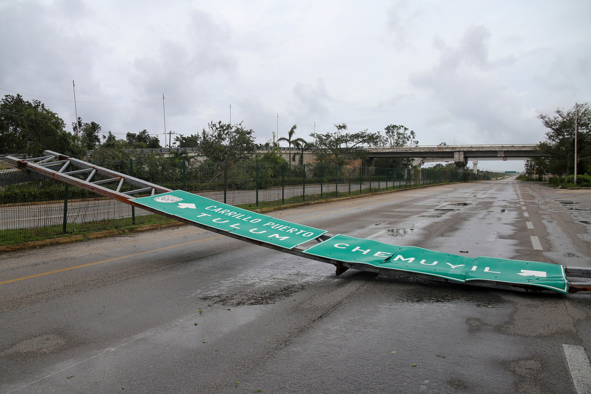 Social media images showed downed street signs and palm trees flailing in the wind near Tulum, and authorities reported some floods, power outages and toppled trees.