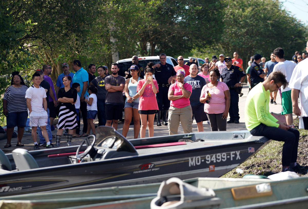 Among them was Jacelyn Alexander, 41, who flagged a rescue boat and escaped after being woken at 4 a.m. by a neighbour who warned their Orange, Texas, apartment complex was flooding.