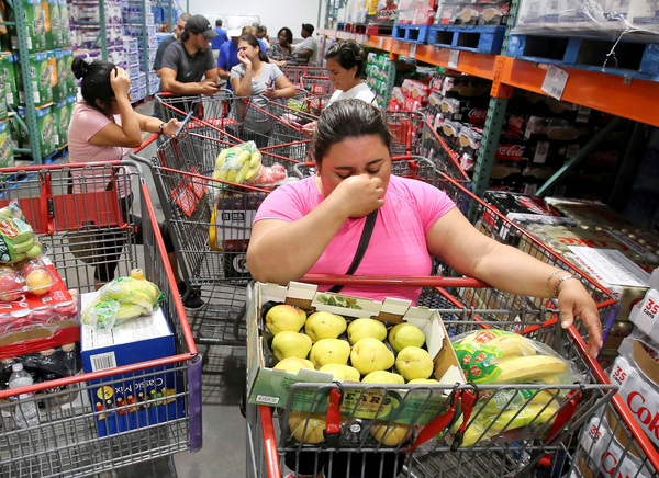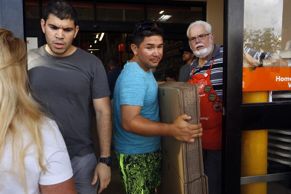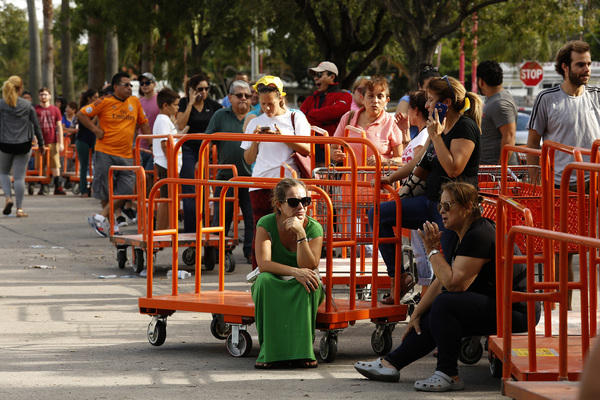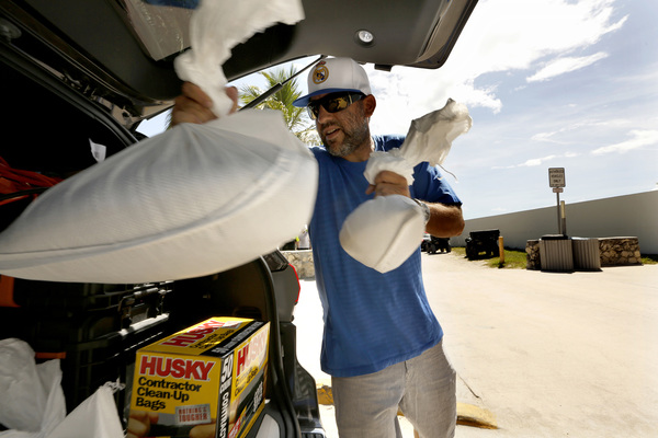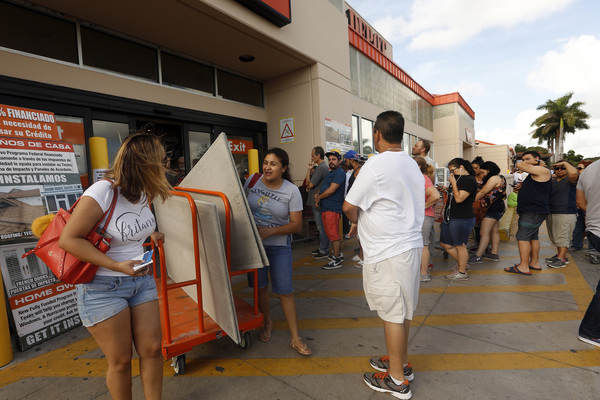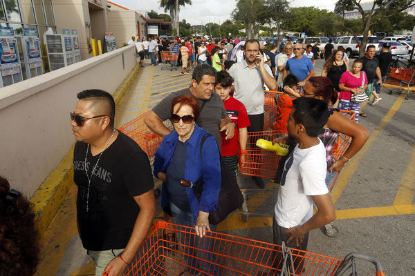 "We're really preparing because it seems like it's going to be heading our way," said Kimberly Antequara, of Pompano Beach, as she loaded a 5-gallon water jug into her cart at a store in Parkland. She said it is the first time she's bought supplies for a hurricane despite being from the area.
