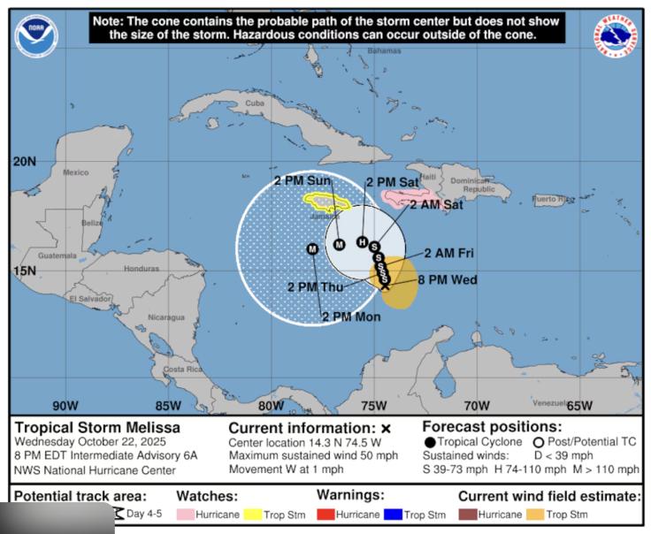 The NHC warns that, even after landfall, Jamaica will remain under threat from lingering rain bands, flash floods, and blocked transportation routes. The storm is expected to weaken somewhat as it moves over land, but forecasters say Melissa could restrengthen over open waters before reaching the Bahamas later this week.