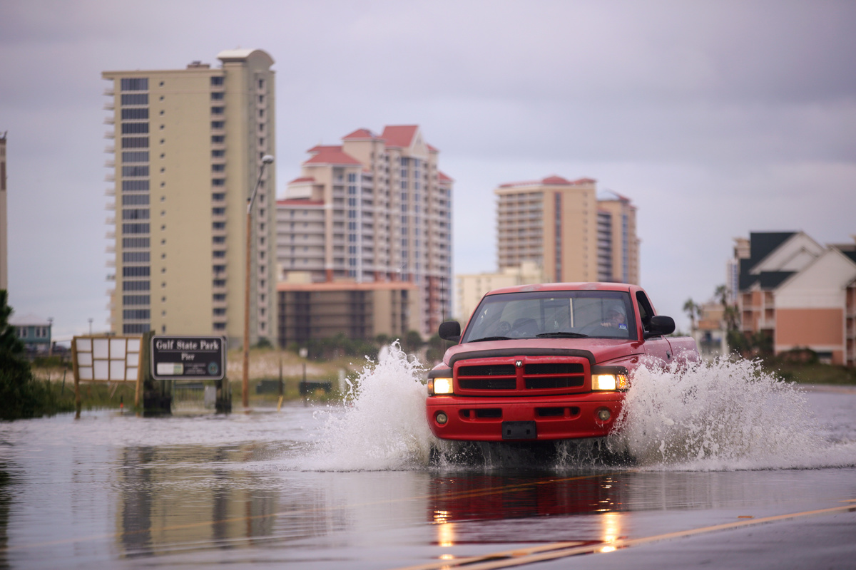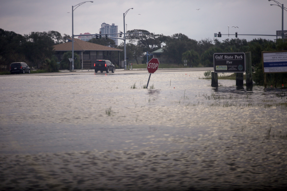 Some areas were inundated with more than 2 feet (60 cm) of rain. Pensacola, Florida, east of landfall, experienced up to 5 feet of flooding, and damaged roads and bridges limited travel across the region. Some 433,000 homes and businesses in Alabama, Georgia and Florida remained without power.