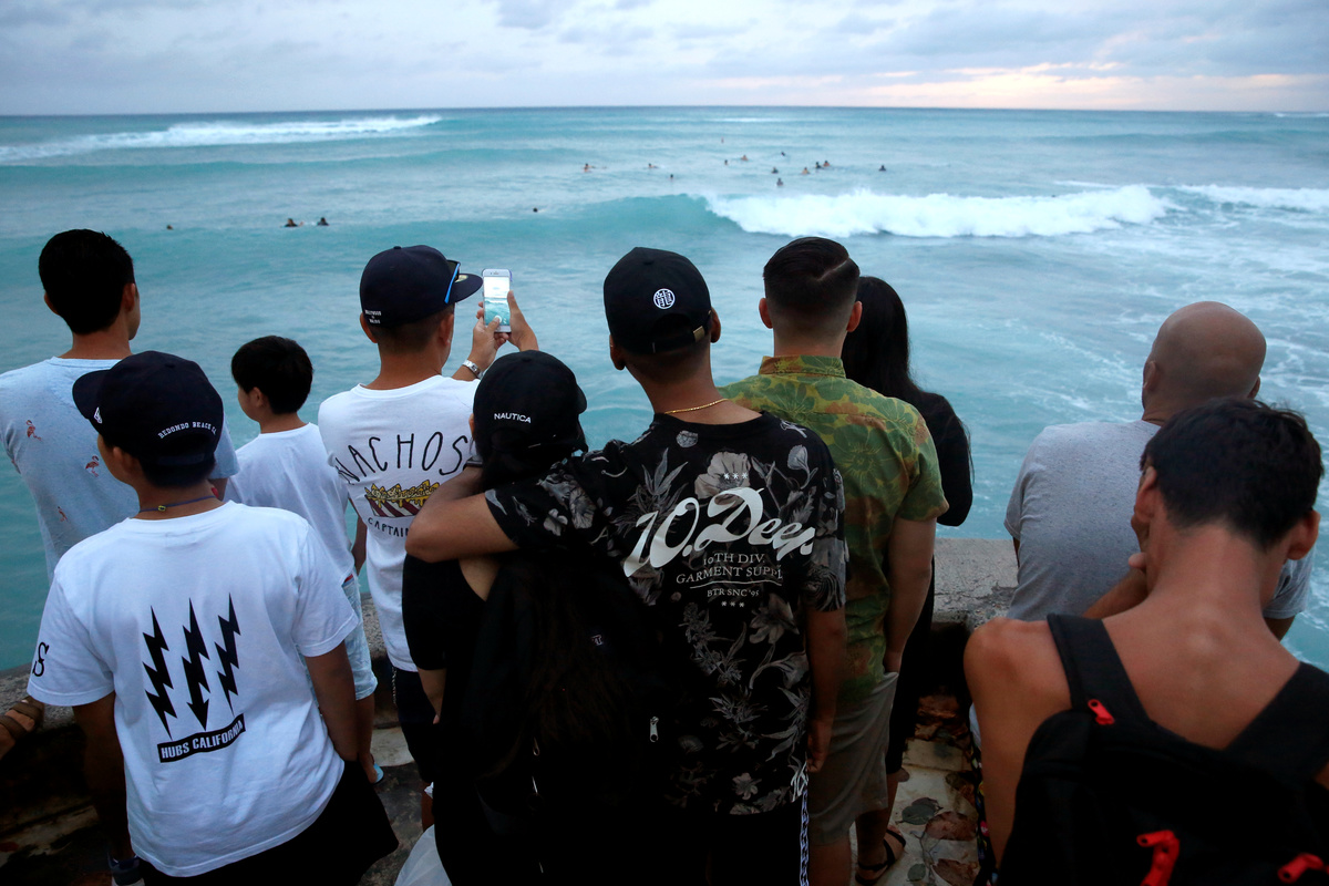 On Maui, further north in the island chain, Debra Frey closed her surf school as she waited for the storm to hit. Even though authorities shut beaches to everyone, she suspected her instructors were surfing.
