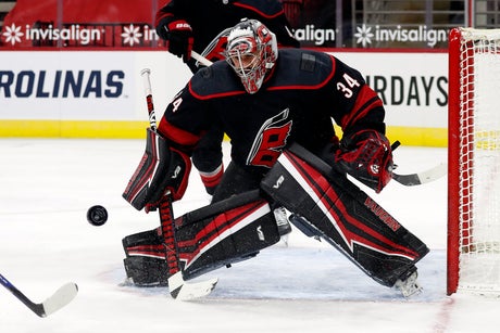 Counting Saturday, the 28-year-old Mrazek has played in four of Carolina’s five games this season. He was 2-1-0 in the first three games with two shutouts, 63 saves and a 1.00 goals-against average.