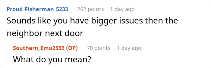 “Sounds like you have bigger issues than the neighbor next door,” another commenter added. So do you, our dear readers, also believe that even more serious problems are possible in this marriage? Please feel free to share your opinions in the comments below this post.