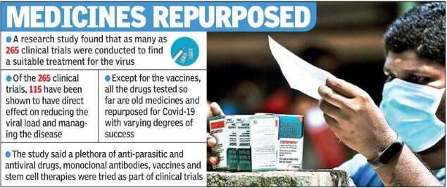 A research study involving scientists, including those from the National Institute of Pharmaceutical Education and Research (NIPER), Hyderabad, found that as many as 265 clinical trials were conducted to find a suitable treatment for the virus and of them, 115 have been shown to have direct effect on reducing the viral load and managing the disease.