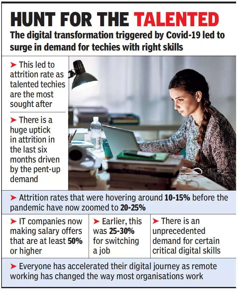 HYDERABAD: With the digital transformation push triggered by Covid-19 leading to a surge in demand for techies with the right set of hot digital skills, talent has emerged as king.