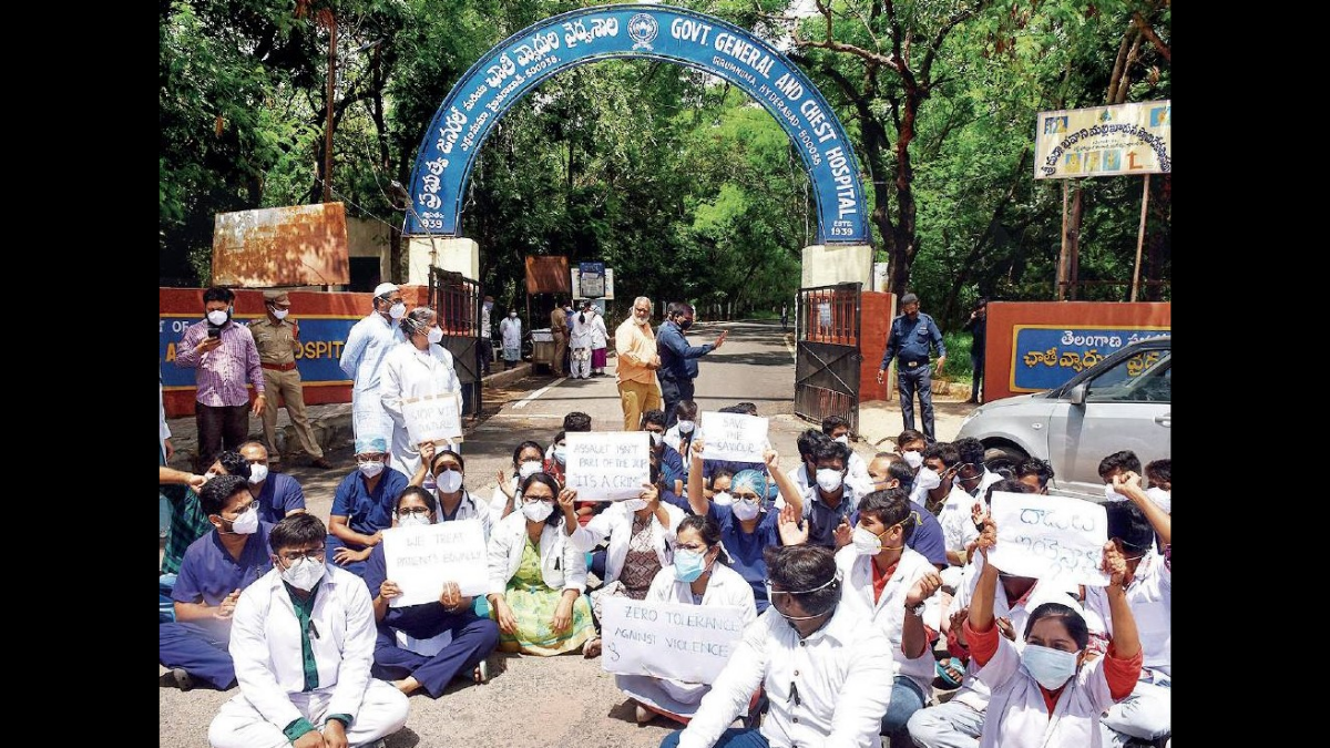 Junior doctor Krishnan N was hit on the face, chest and stomach on Sunday and has complained of pain. Angry over the assault of their colleague, dozens of doctors began a strike, leaving patients in the lurch. Though the emergency services remained operational, regular patients experienced a lot of delays and many had to return home after waiting for a few hours. “I had come for a follow-up of my father’s post Covid-19 issues. He has been suffering from breathing problems on and off. Only after we came here and waited for two hours did we get to know that there is a long queue and doctors are on protest,” said Rifat Bi, who had come from Mehdipatnam.