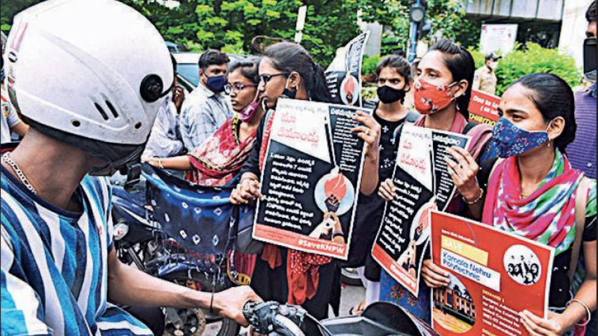 HYDERABAD: To stop the privatisation of Kamala Nehru Polytechnic For Women (KNPW), alumni and students of the first women’s polytechnic college in the country organised a protest by seeking alms at the Gun Park on Thursday.