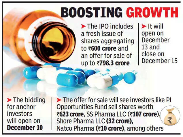 The offer for sale will see investors like PI Opportunities Fund sell shares worth Rs 623 crore, SS Pharma LLC (Rs 107 crore), Shore Pharma LLC (Rs 32 crore), Natco Pharma (Rs 10 crore), among others.