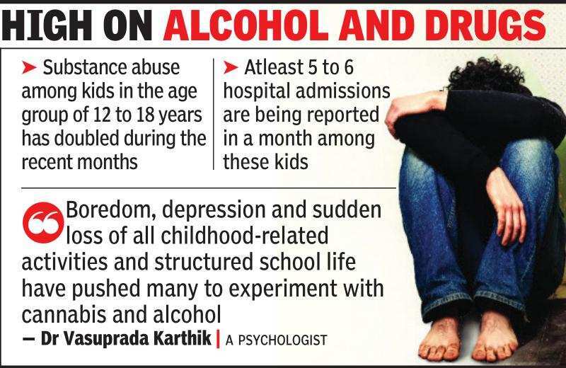 Like these two adolescents, many more younger citizens have borne the brunt of the pandemic-induced restrictions in life and have turned to experimenting and substance abuse. Substance abuse among the kids in the age group of 12 to 18 years has, meanwhile, doubled during the recent months, say experts and atleast 5 to 6 hospital admissions are being reported in a month among these kids.