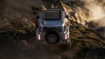 According to Hyundai, the Boulder’s boxy design gives the SUV “aggressive approach, departure, and breakover angles” and features a “generous fording depth.” It wears 37-inch mud-terrain tires and features a full-size mounted spare on the tailgate. The tailgate features a double-hinge that opens in either direction and a power drop-down rear window.