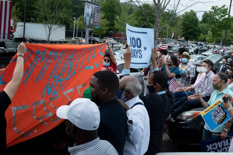 The protest at the event on Thursday – marking the president’s 100th day in office – underscores the challenges facing his administration as he rallies support for an ambitious domestic agenda to pressure Republican lawmakers to pass White House-backed legislation, including a proposal to put millions of immigrants on the path to citizenship.