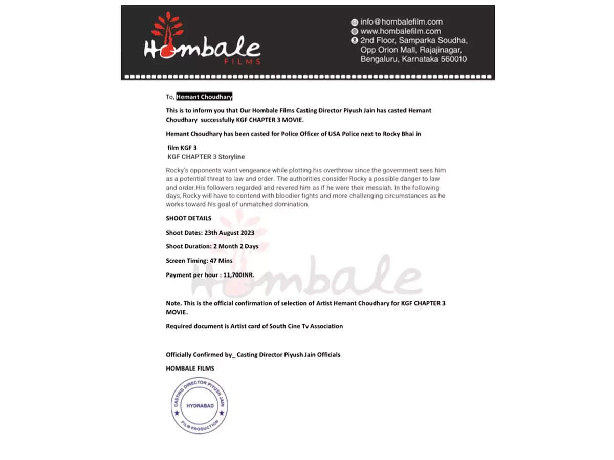 Recently, actor Hemant Choudhary almost got conned by someone who posed as a casting agent for the south film KGF Chapter 3. Hemant says, “Last month, I got a message on Instagram from a person saying that they were casting for a big south project. They said that they had seen my recent work in the web show Aashram, where I played a police inspector and wanted my number. I then got a call from a guy who said they were considering me for the role of a police commissioner. They asked me to audition for it, so I sent them a clip. Later, I was told that I had been finalised and they sent me documents, which looked like a formal agreement.”