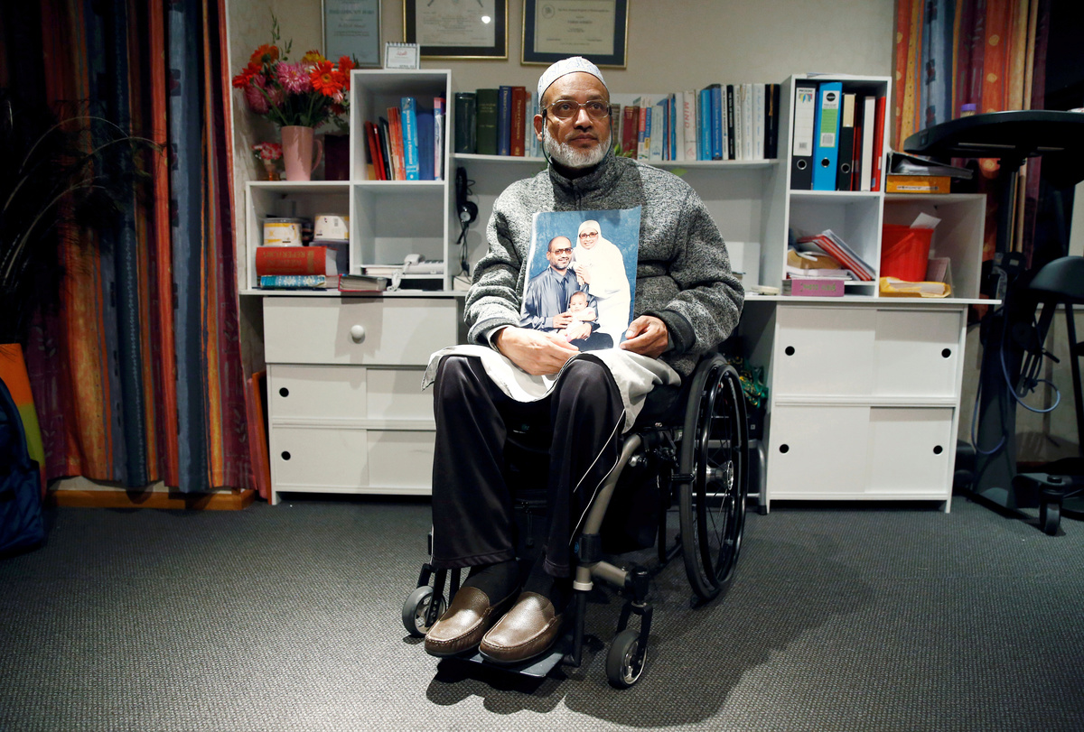 Farid, who uses a wheelchair after an earlier accident, was talking to a friend and was delayed from joining worshippers at his usual spot at the front of the mosque, instead praying in a small side room.