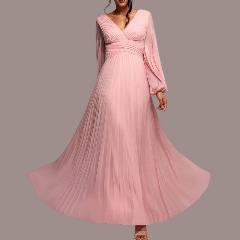 The wrap over drape at the waist of this dress is so flattering, and the blush pink colour makes it perfect for a summer wedding. The long sleeves give you arm coverage, but are lightweight enough not to make it too warm to wear in summer.