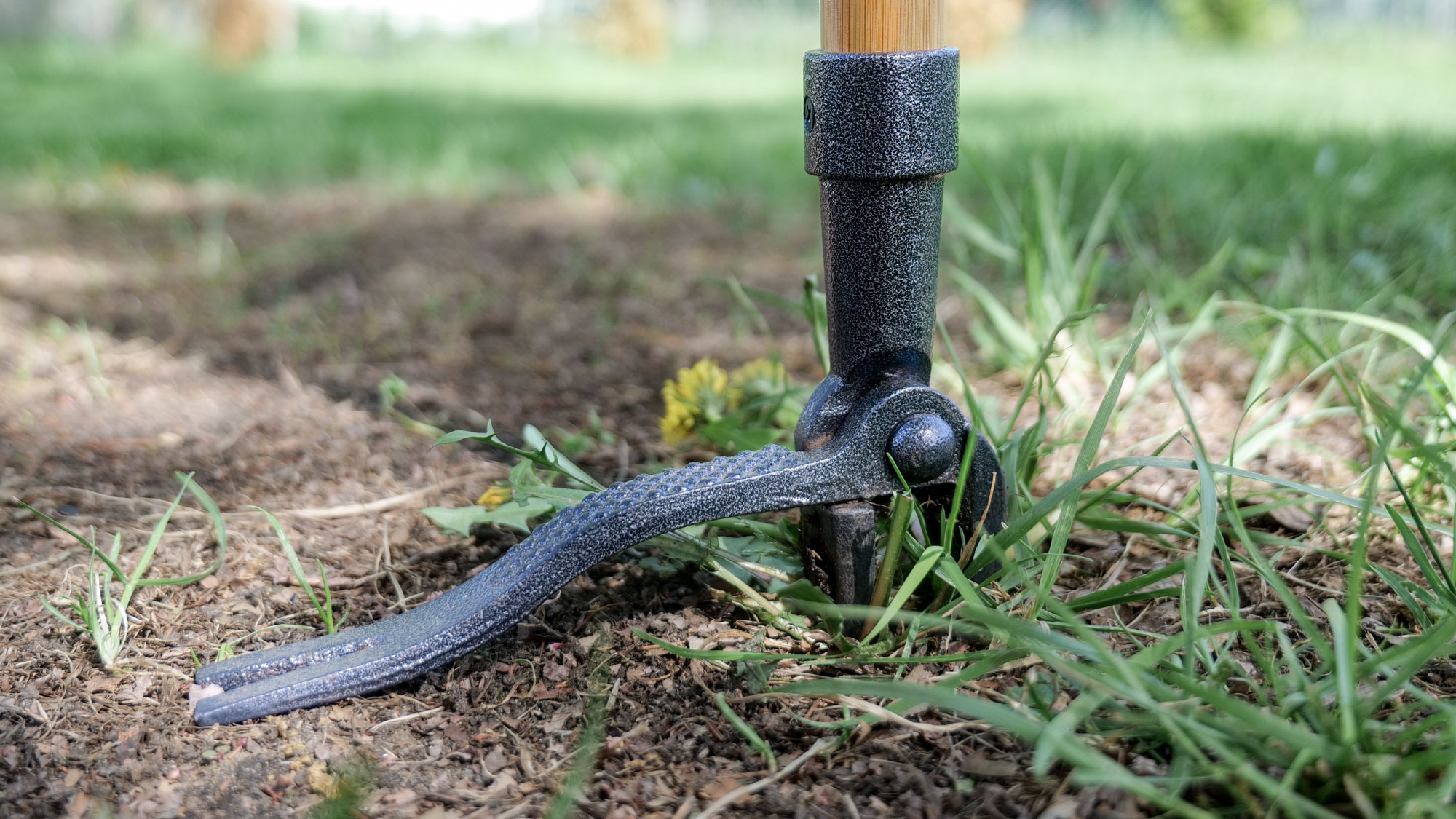 When the Grampa's Weeder finally arrived, I was surprised most by its bare-bones design. On one end are two sets of metal prongs held along a 45-inch wooden pole. I didn’t think that this simple design would be effective at removing dandelions, crabgrass, white clover, and the one I fear most, broadleaf plantain — which remind me of those pods that contained people in ‘Invasion of the Body Snatchers.’