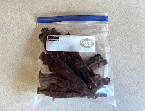 Being the Deadwood fanatic that I am, I obviously opted to jump straight into jerky-making upon bringing my dehydrator home. It’s hard to get much simpler than dehydrating meat — pick a lean cut, slice into strips, marinate for a while, then set ‘em and forget ‘em in the NESCO. My particular stackable model allows a decent amount of food yield for the casual hobbyist; in this case, a one-pound package of precut stir-fry steak easily fit in the gadget. After that, you just set the temperature and wait... and wait... and wait some more...