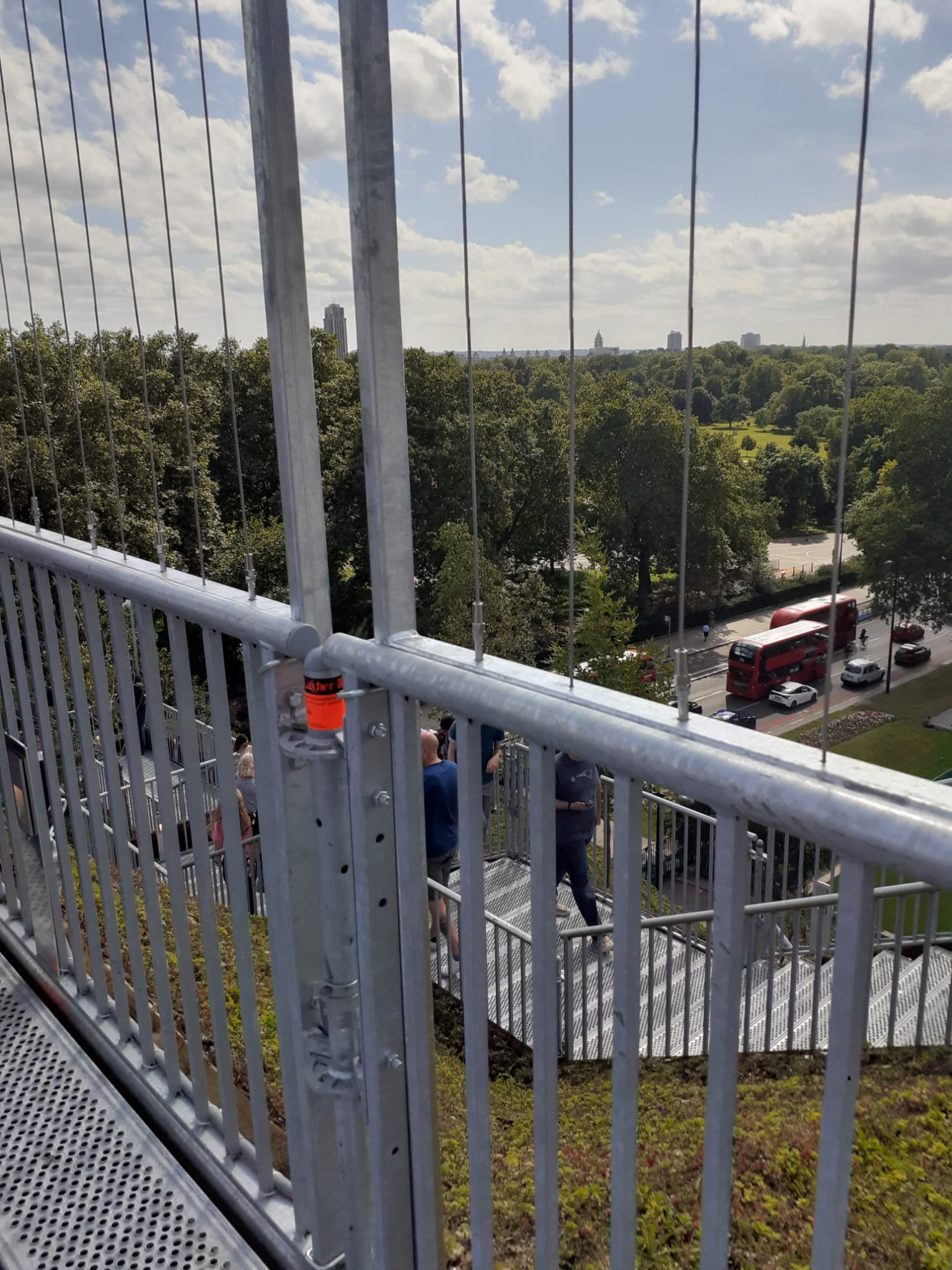 Meanwhile, cheap railing – while helpfully preventing people from tumbling off the mound – means this ‘view’ is punctuated with metal rods, really underlining the jail vibe. I am a prisoner looking out to central London and the freedom it entails.