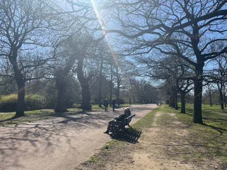 In Greenwich Park, small groups of people were seen taking walks, setting up picnics or sitting on benches to drink coffee and chat.