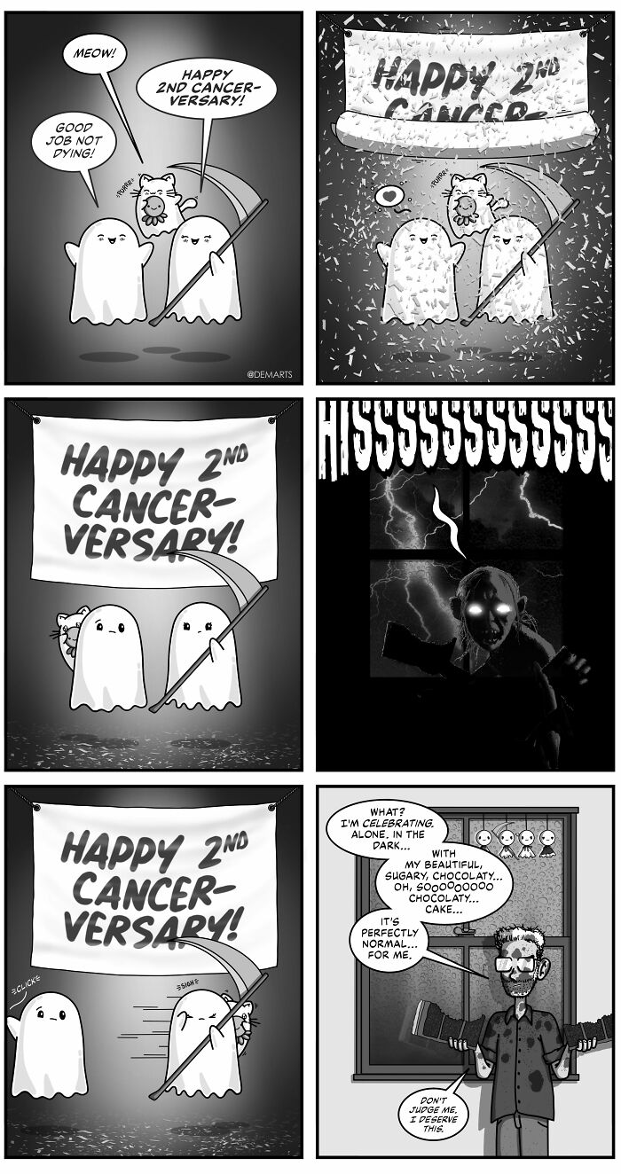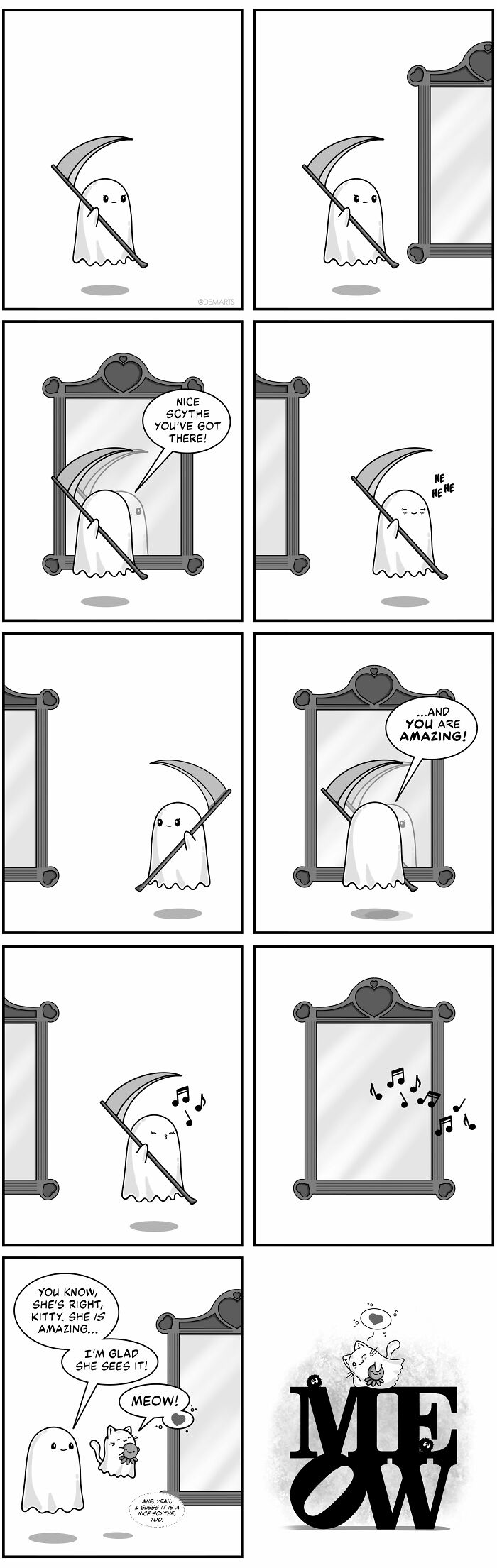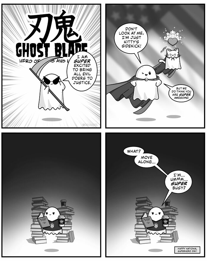 Hi! My name is Dan and I’m the creator of Ghost and Ghost Kitty Universe. I started GGKU in September 2020 as what I thought was going to be a one and done four-panel comic. Just one of the many drawings I was busying myself with during that time.
